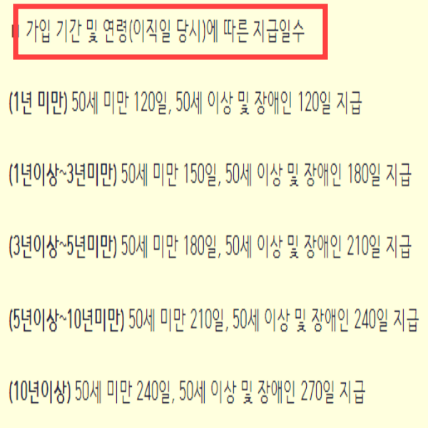 고용보험 가입 기간과 나이에 따라 달라요. 최소 120일부터 최대 270일 까지 받을수 있어요. 고용보험에 가입한 사업장에서 이직한 경우 이전 다른 회사의 고용보험에 가입되었던 기간까지 합산되어 산출한답니다.