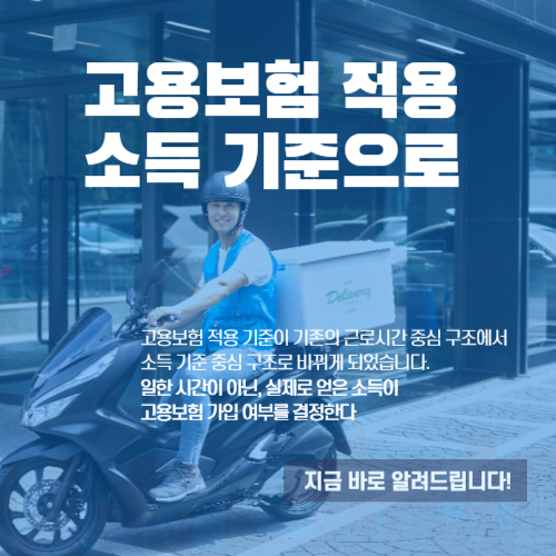 고용보험 적용 기준이 기존의 근로시간 중심 구조에서 소득 기준 중심 구조로 바뀌게 되었습니다. 변화는 "일한 시간이 아닌, 실제로 얻은 소득이 고용보험 가입 여부를 결정한다"는 점입니다. 특히 편의점 아르바이트, 배달 라이더, 요양보호사처럼 여러 곳에서 일하거나 근로시간이 일정하지 않은 근로자가 혜택을 볼수 있을것으로 예상됩니다.