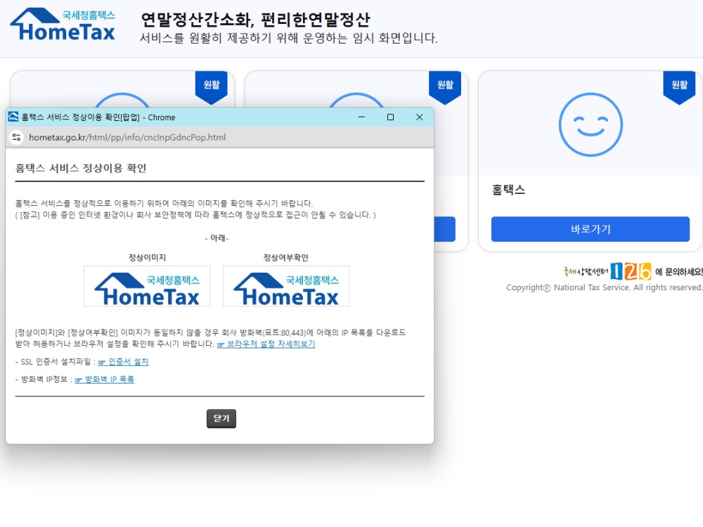 카드사나 쇼핑몰 등에서 개인정보가 탈탈 털렸다는 이슈가 많은 시기에는 사이트를 접속했을때 "현재 서비스 중지 시간입니다"라는 문구가 뜨면, 가장 먼저 해킹이나 개인정보 유출 걱정을 합니다. 하지만 로그인 자체가 정상적으로 되고, 다른 홈텍스 메뉴가 문제없이 작동한다면 해킹 가능성은 매우 낮다는 점 알려드립니다.