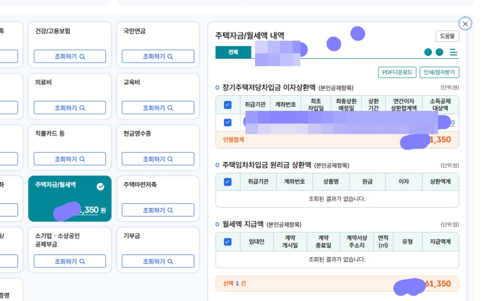주택 관련 항목은 본인 조건 충족 여부에 따라 실제되거나 보여질수 있는데 정확한 확인을 요하는 부분입니다. 집을 가지고 있지 않거나 소득 기준 및 계약서상 주소·명의 불일치로 놓치는 경우가 많으니 꼭 확인하세요.
