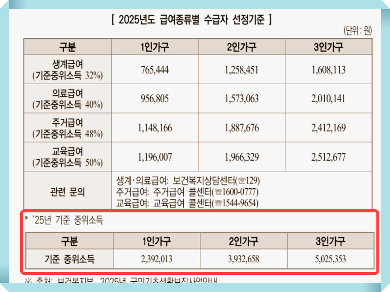 - 생계·의료·주거·교육급여 대상
