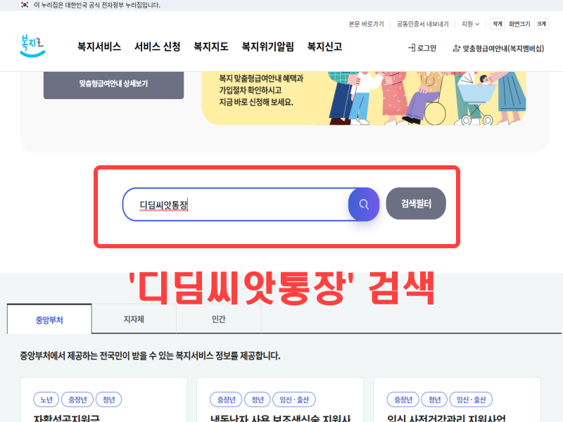 로그인(인증필요)후 '디딤씨앗통장' 검색후 신청