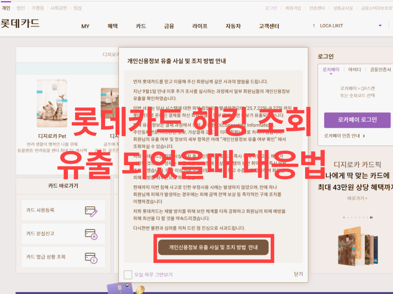 롯데카드 해킹 조회 유출되었을 대응법 체크
