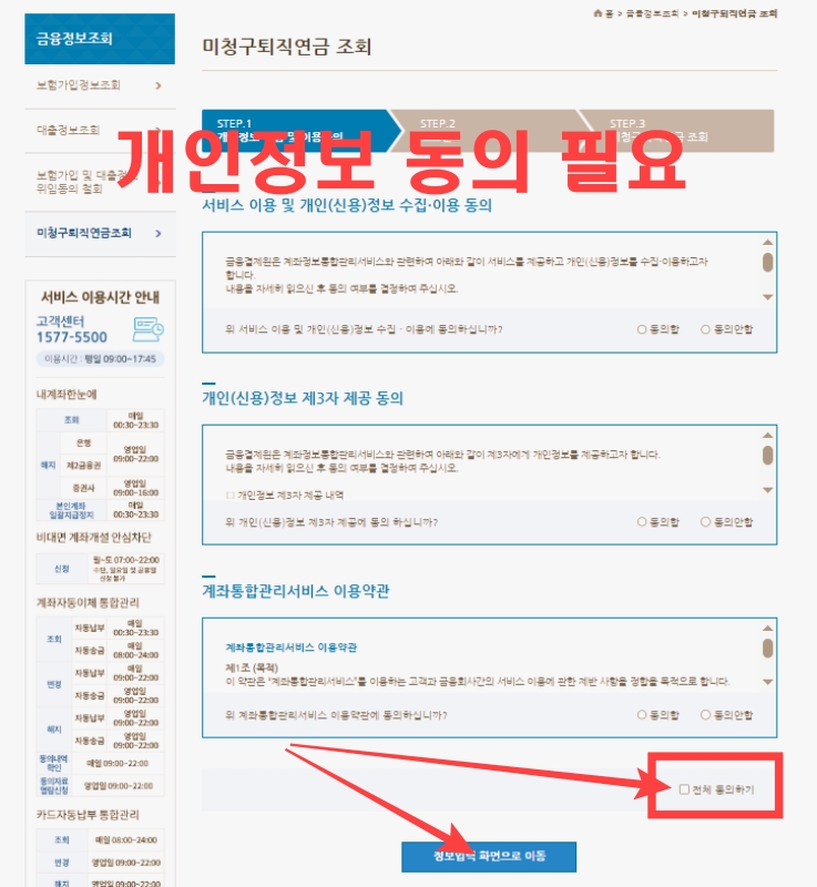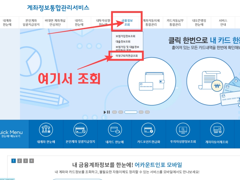 5. 어카운트인포로 미청구 퇴직연금 조회하는 방법