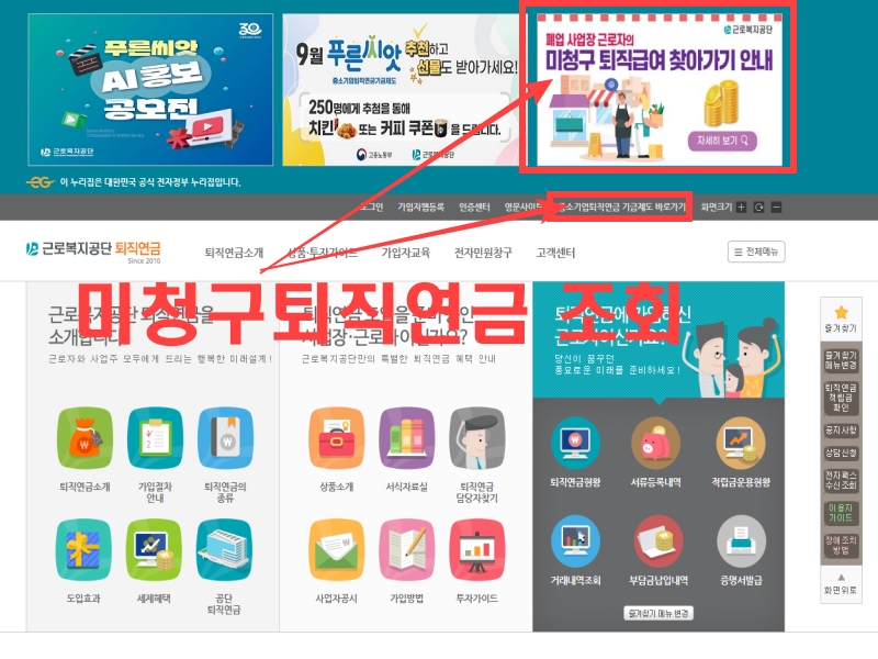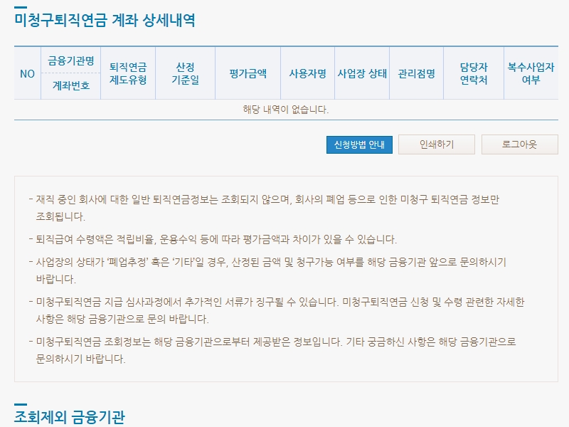 아쉽게도 저는 미청구퇴직연금은 없네요.