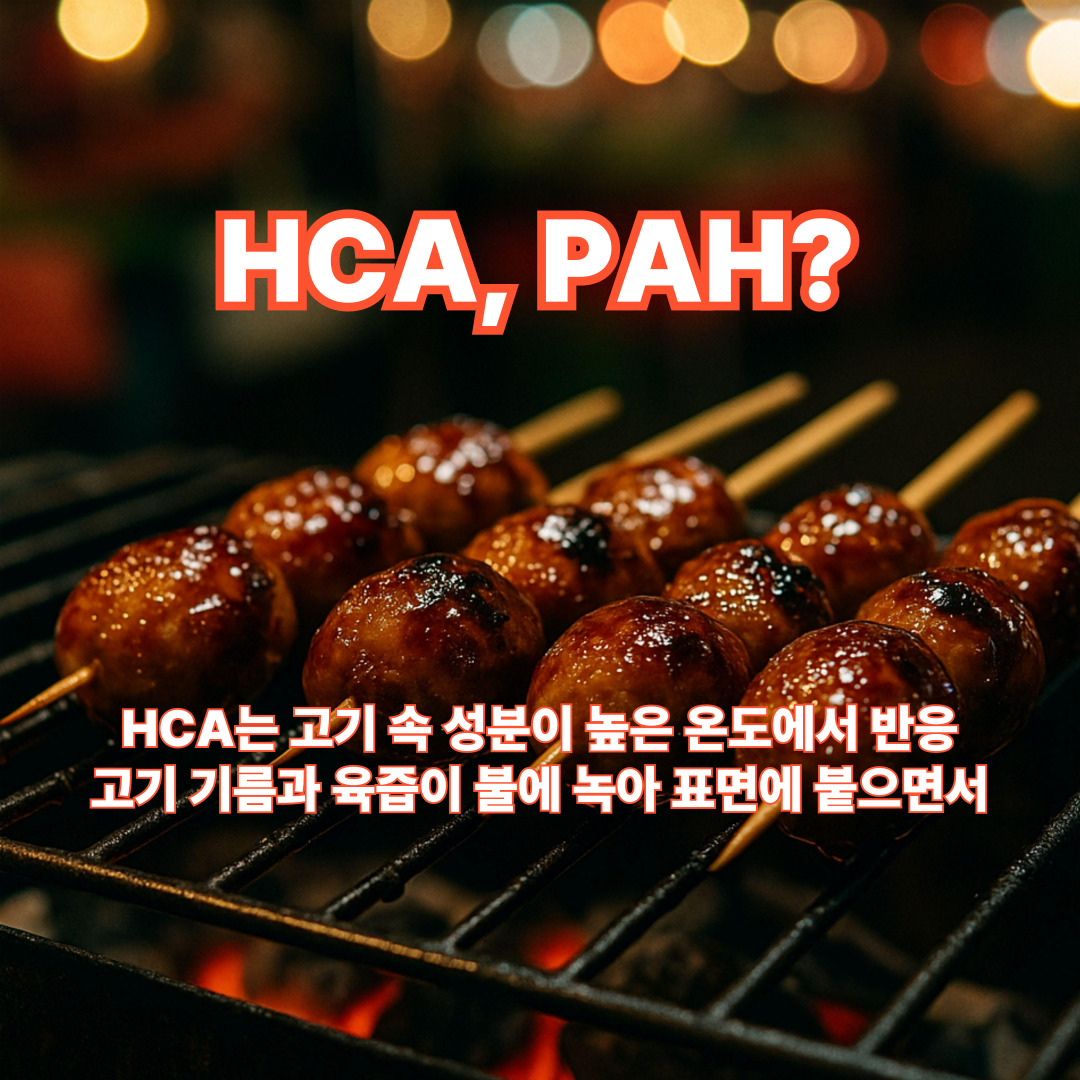 - HCA는 고기 속 아미노산, 당, 크레아틴 같은 성분이 높은 온도에서 반응하면서 생길 수 있는 물질입니다.