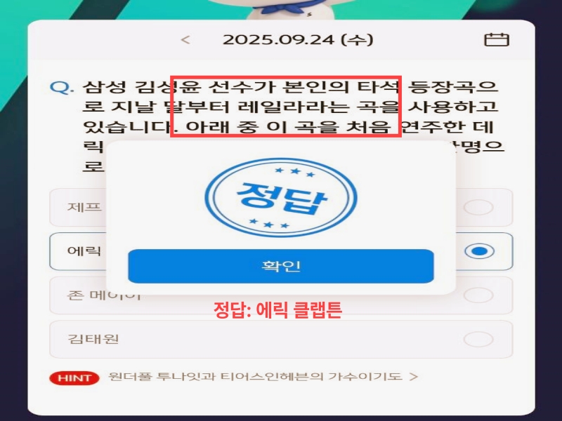 쏠야구 9월 24일 정답은 에릭 클랩튼