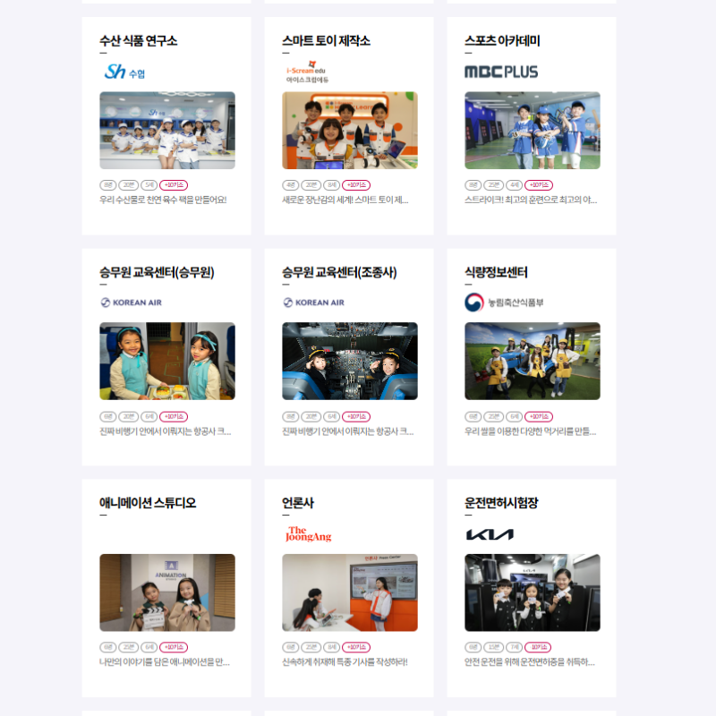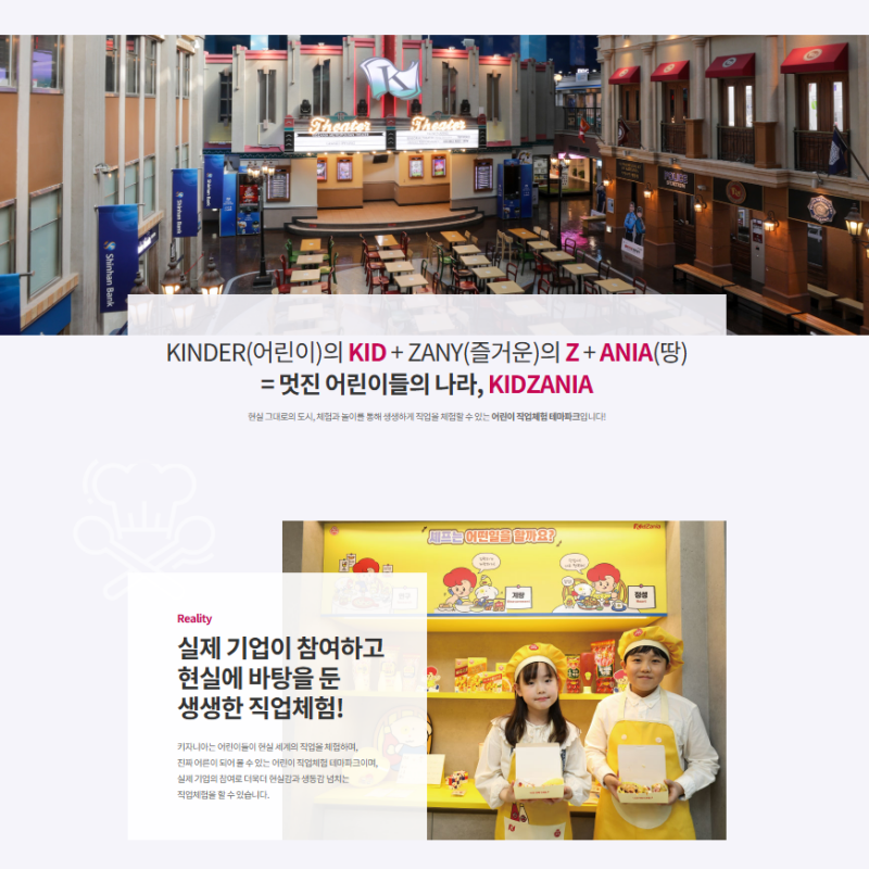 키자니아(Kidzania)는 아이들이 직접 은행원, 의사, 소방관, 파일럿 등 다양한 직업을 체험할 수 있는 글로벌 직업 체험 테마파크입니다. 전 세계 20여 개국에서 운영 중으로,한국에는 서울과 부산 두 곳에서 운영되고 있어요. 실제 기업이 참여하고 어린이가 미래의 직업에 대해 미리 체험해 볼수 있어 진로결정전 체험해 보기 좋은 곳이예요. 반려동물케어센터, 법원, 경찰서, 관세청, 대학교, 드라이빙 트랙 등 아이들이 좋아하는 직업체험이 많아요.