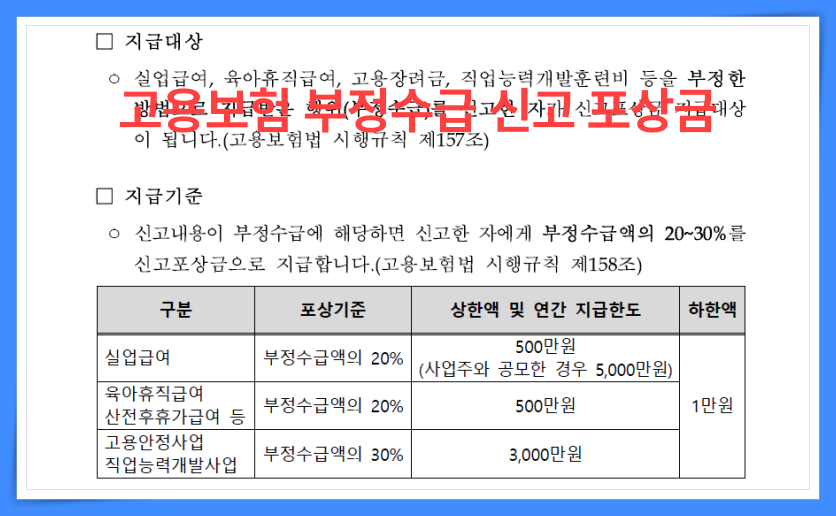 실업급여 부정수급은 실제 사업장 어려움이나, 법에서 정한 테두리 내에 실제 실업자가 받아야하는데 이런 질서를 어지럽히는 행위는 큰 벌을 받아야 마땅하나, 이번 ‘집중신고기간’에는 혜택?이 있어요.