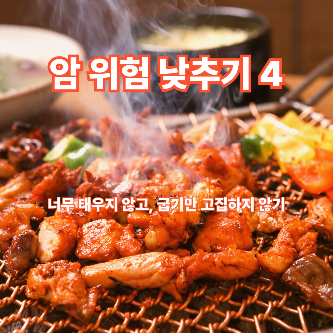 불맛 나는 반찬은 맛있지만, 늘 직화나 센 불 조리만 반복할 필요는 없습니다. 같은 재료라도 삶기, 찌기, 조림처럼 덜 거칠게 조리하면 식탁이 훨씬 부드러워집니다. 미국 국립암연구소는 고기나 생선 등을 높은 온도에서 굽거나 튀기거나 바비큐할 때 HCA( 헤테로사이클릭아민)와 PAH(다환방향족탄화수소) 같은 물질이 더 생길 수 있다고 설명합니다. 그래서 완전히 금지하는 것보다, 너무 검게 태우지 않고 조리법을 다양하게 섞는 습관이 더 현실적인 관리 방법입니다.