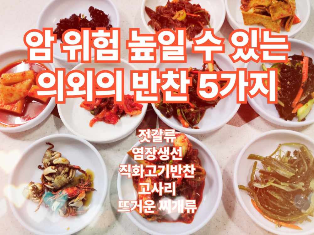 매일 먹는 집반찬은 몸에 해로울 거라고 쉽게 생각하지 않게 됩니다. 배달음식이나 인스턴트는 경계하면서도, 정작 식탁에 자주 오르는 반찬은 "원래 먹던 음식이니까 괜찮겠지!"하고 넘기기 쉽습니다. 하지만 건강은 특별한 음식을 챙기는 것보다, 익숙한 반찬을 어떻게 먹고 있는지 돌아보는 데서 달라지기 시작합니다. 특히 짠 보존 방식, 강한 불맛을 내는 조리법, 너무 뜨겁게 먹는 습관은 생각보다 몸에 부담을 줄 수 있습니다. 오늘은 식탁에서 흔히 볼 수 있지만, 자주 반복되면 한 번쯤 점검해볼 필요가 있는 의외의 반찬 5가지를 정리해보겠습니다.