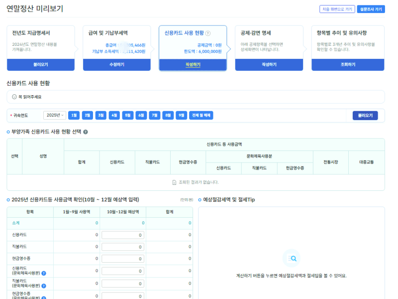- 신용카드 예상 지출 입력 → 절세효과 가장 큼