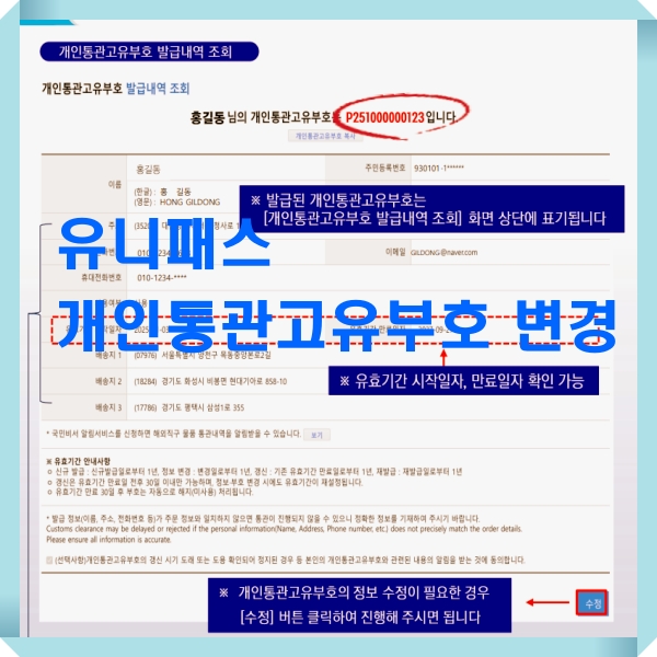 유니패스에서 번호를 바꿨다고 자동으로 변경되지 않는다는점 인지하시고 쇼핑시 주의하시기 바랍니다.