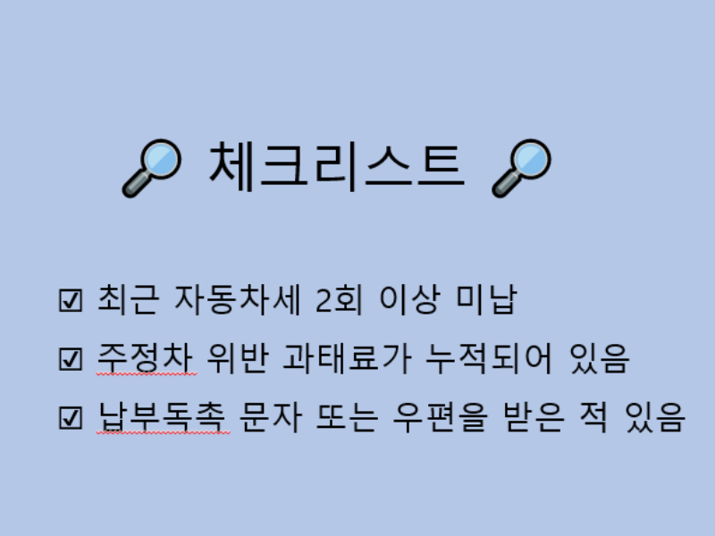 체납 차량 단속은 "단속 피하기"보다 사전 알림으로 "예방하기"가 중요해요. 단속이 시작되기 전, 위택스 또는 스마트 위택스 앱에서 내 차량 상태를 바로 확인하세요.