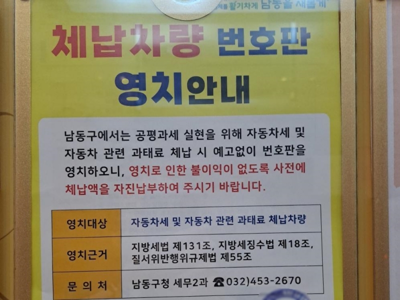 인천 남동구가 자동차세 및 과태료 체납 차량에 대한 야간 번호판 영치 단속을 2025년 10월 13일부터 시작하기로 했습니다. "혹시 내 차도 대상일까?" 궁금해 하시는 분들이 많습니다. 지방세·과태료 체납 단속이 강화되고 있는데요, 단속 개요와 대상, 확인방법, 번호판 영치후 해지 절차까지 알아보겠습니다. 자동차세, 과태료 등의 체납이 없게하는 꿀팁까지 공유해 드릴게요.