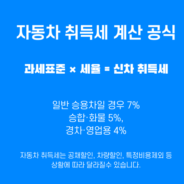 마지막으로 자동차 취득세 계산은 과세표준 × 세율로 한다는걸 말씀드려요. 감사합니다.