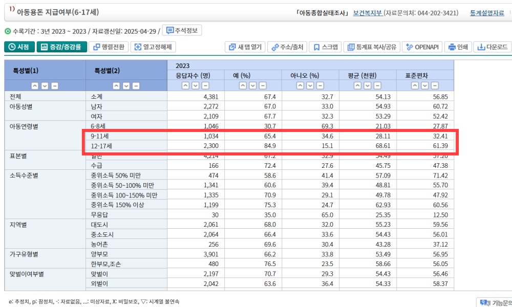 이와 같이 먼저 상황을 판단하고 국가통계청 자료를 판단기준으로 같은 또래가 얼마정도 받는지도 참고해서 용돈의 금액과 사용한도를 정했습니다.