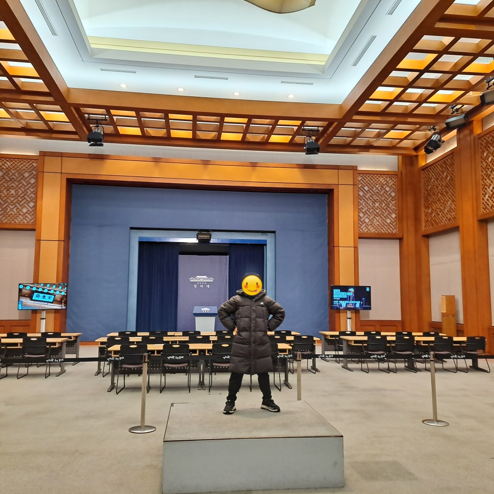 아이에게 가장 인상적이었던 공간은 브리핑룸이었어요. 캐쥬얼 차림의 아들이 연단에 서서 기자들 앞에서 브리핑을 하듯 대본을 읽는 모습을 사진에 담았는데 아직도 그사진을 보면, 커서 꼭 청와대에서 일하고 싶다며 결의를 다지더라구요. 영빈관 앞에서는 외국 정상과 사절단도 여기서 맞이하냐며 눈을 반짝이며 영어공부를 열심히 할것이라고... 관람을 마치고 나서는 청와대가 생긴 배경 부터 예전 왕들의 삶까지 역사공부 제대로 했답니다.