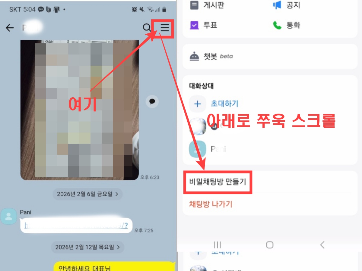 - 비밀채팅을 적극 활용하여 대화 내용 보안을 강화하세요.