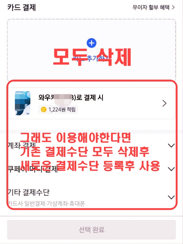 2) 쿠팡에 등록된 카드·계좌 삭제