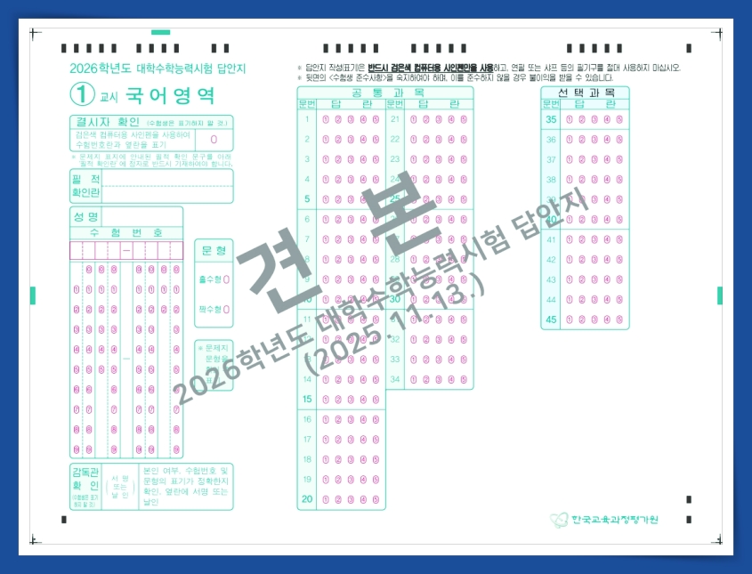답안은 무조건 컴퓨터용 검은색 사인펜으로만 표시해야 해요. 샤프나 연필로 마킹하면 인식이 안 됩니다. 물론 오류가 발생될수 있으니 답안지에는 가마킹도 하지 않는게 좋아요. 또한 문제지의 홀수·짝수형 문형을 잘 봐야 해요. 수험번호 끝자리가 홀수면 홀수형, 짝수면 짝수형이에요. 이 부분을 놓쳐서 잘못 표기한 경우 불이익이 생길 수 있으니 시험 시작 전에 꼭 한 번 더 점검하세요.