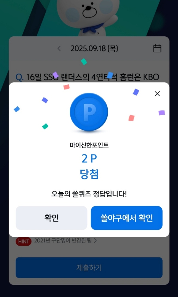 힌트에 보니 2021년 구단명이 변경된 팀이라고 나와서 SSG를 직감했어요.