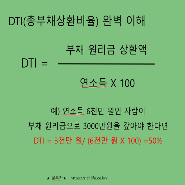 DTI = 연간 원리금 상환액 ÷ 연소득 × 100