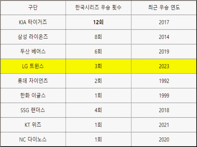 3. LG 트윈스 한국시리즈 우승 횟수